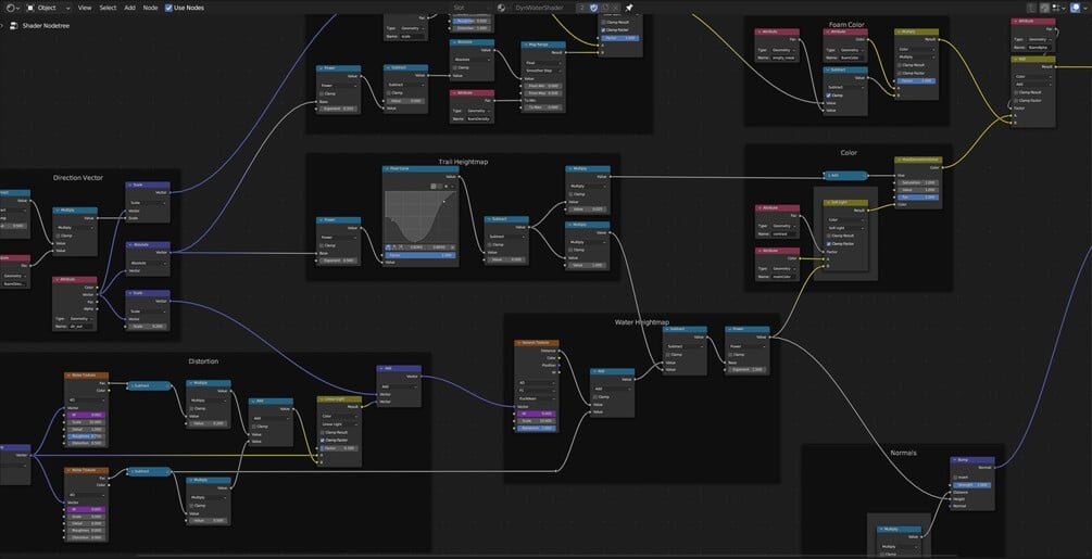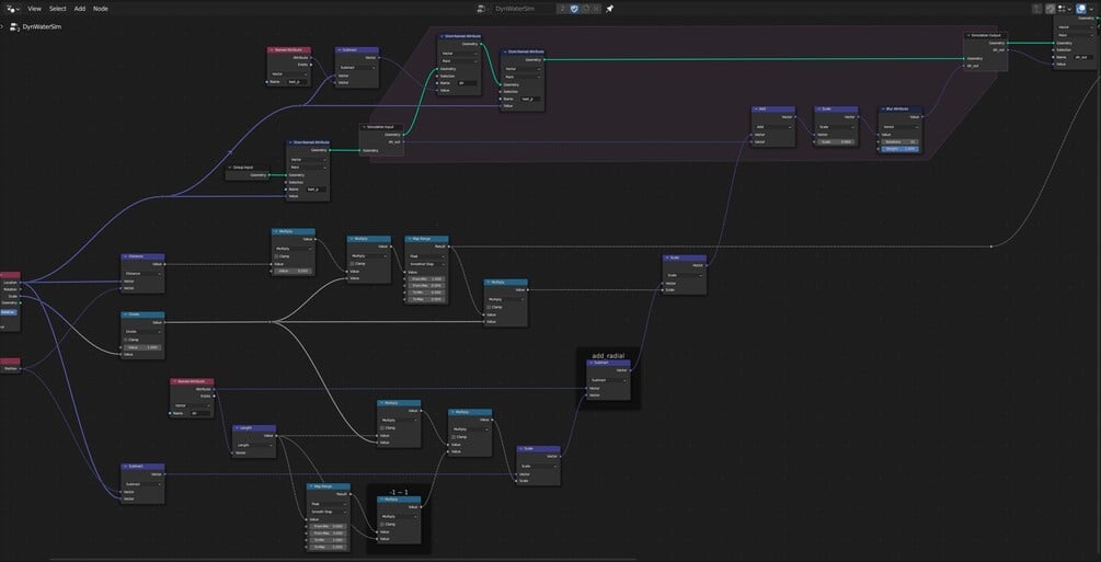 Dynamic water shader using geometry nodes simulation.